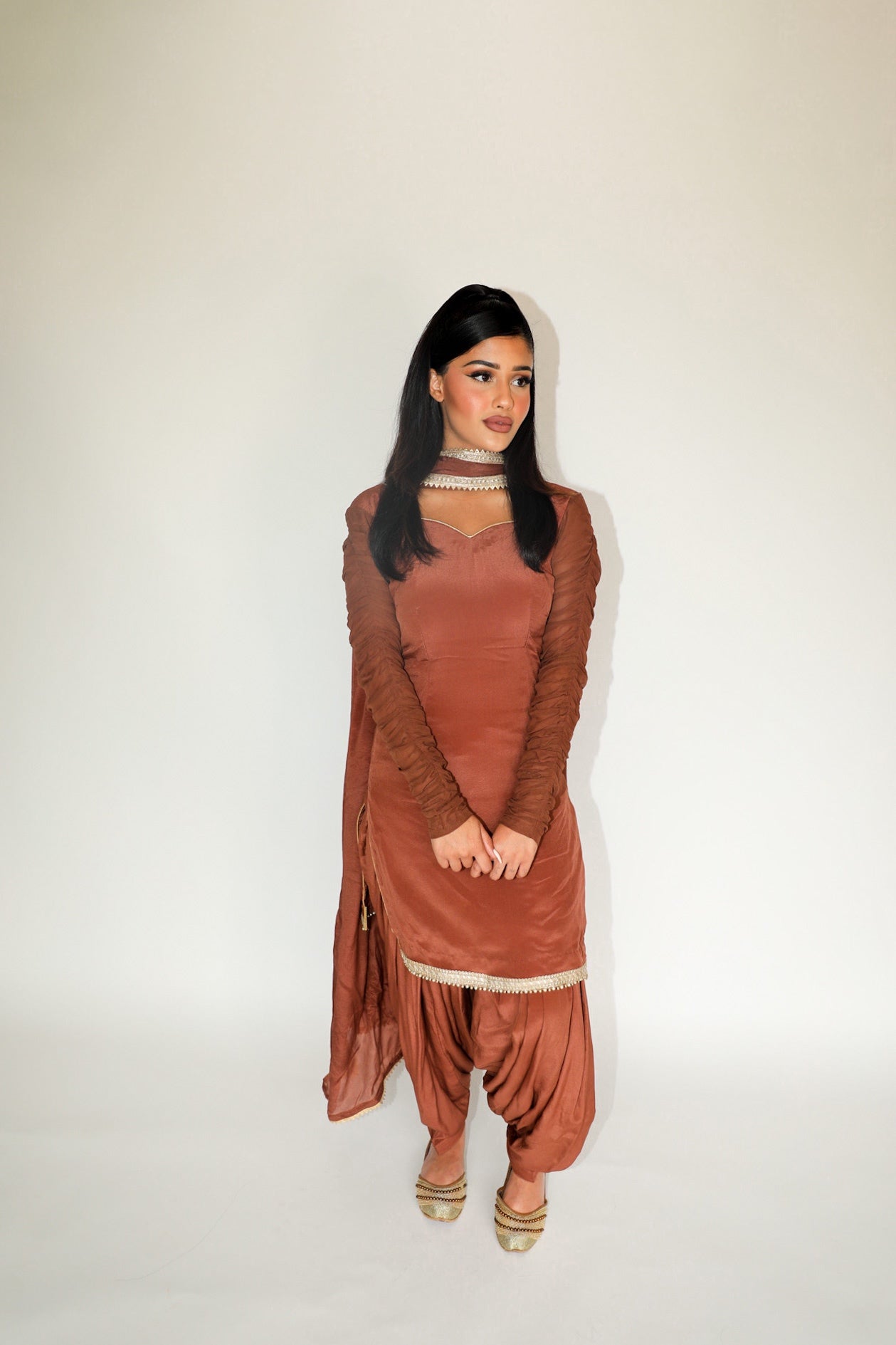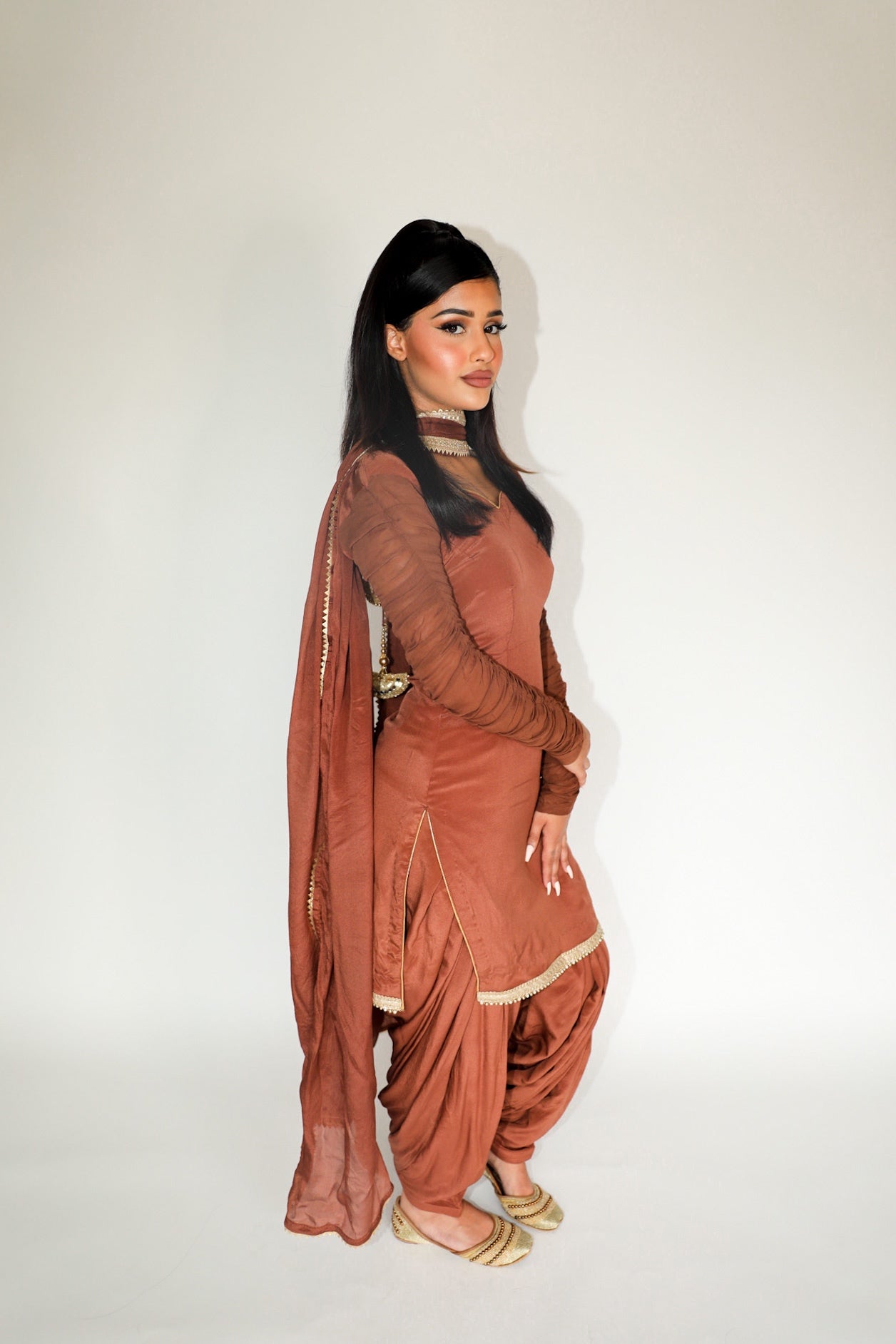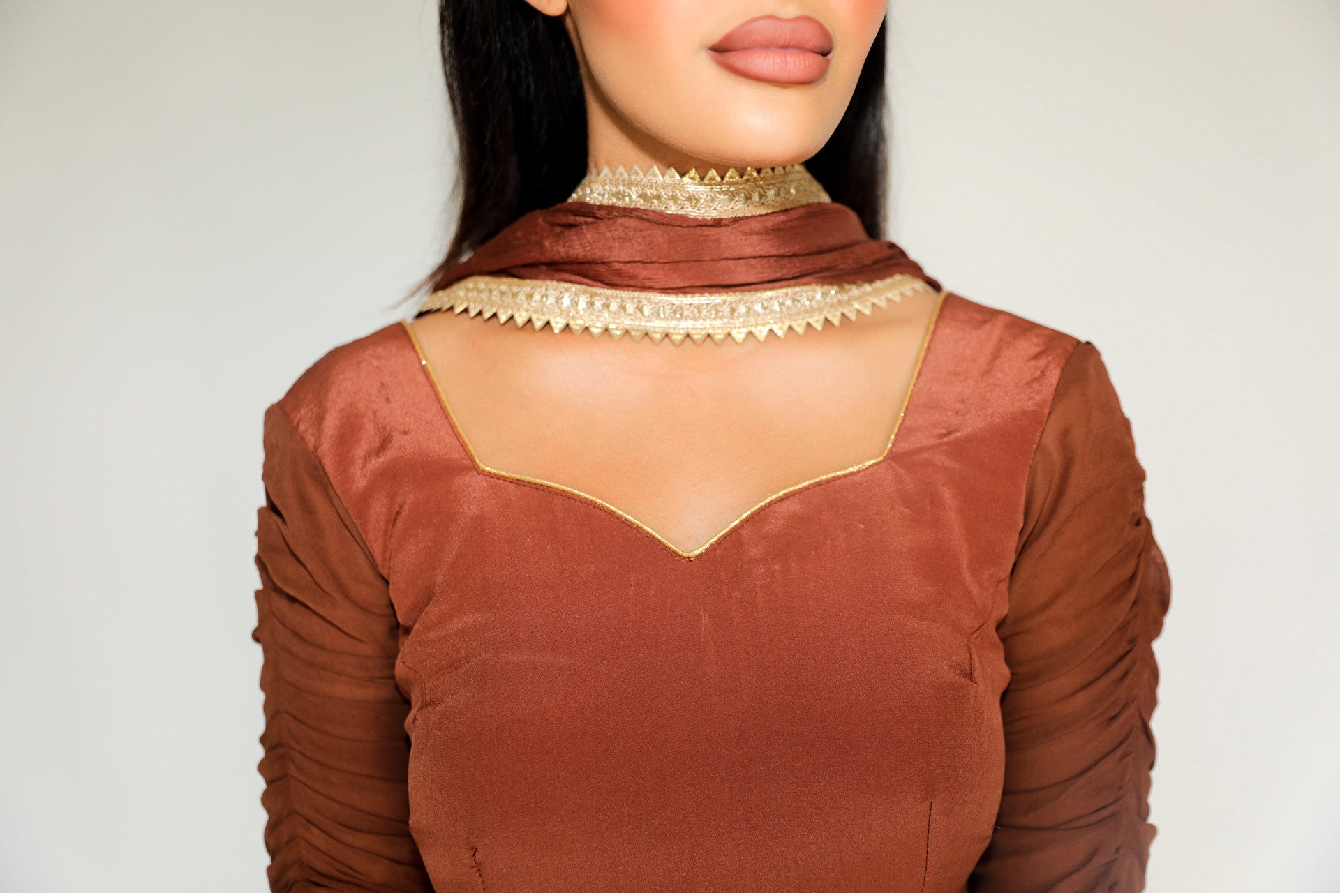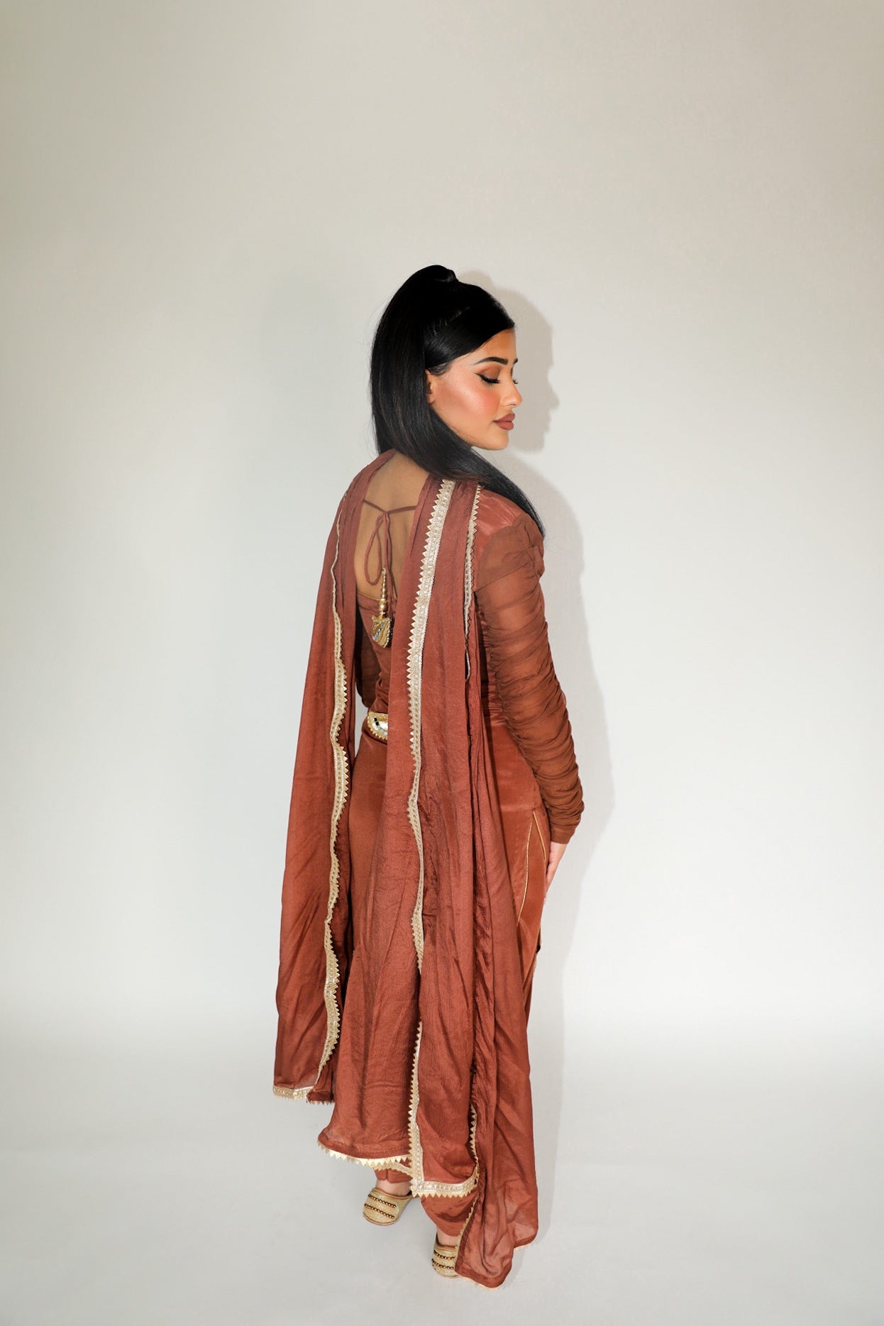 Semi Pure 60 gram Crepe with Georgette Sleeves and Chiffon Dupstairs